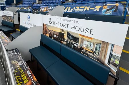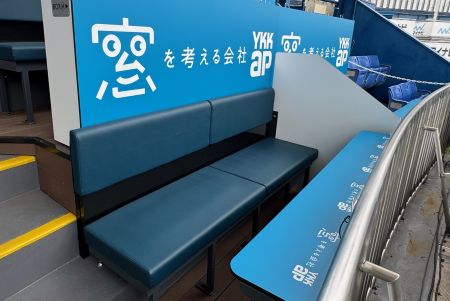 2名様用は、通常の座席(約43㎝)よりも幅が広く(55㎝)、座席1組につきカップホルダー付のミニテーブルが1つ設置され、ゆったりと落ち着いて観戦できる仕様になっています。(内野1・3塁 計48組96席)